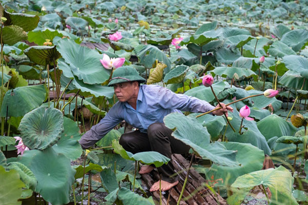 One famous cultivar of lotus grown here is named Bach Diep, which means a hundred petals. It is well known for its characteristic fragrance.