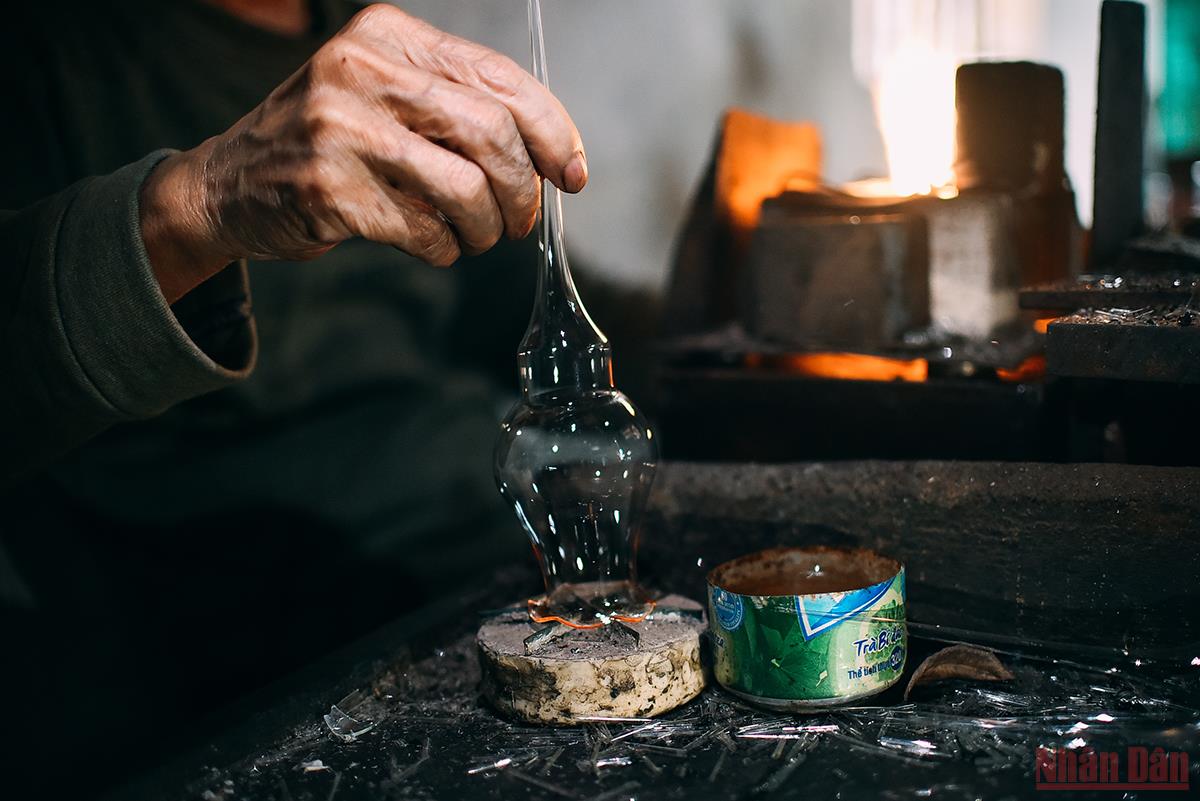 Then, Gung blows and uses his hands to rotate the shapes of the glass pieces according to each idea. Perhaps that's why, the old worker also jokingly called this job is like "selling breath".