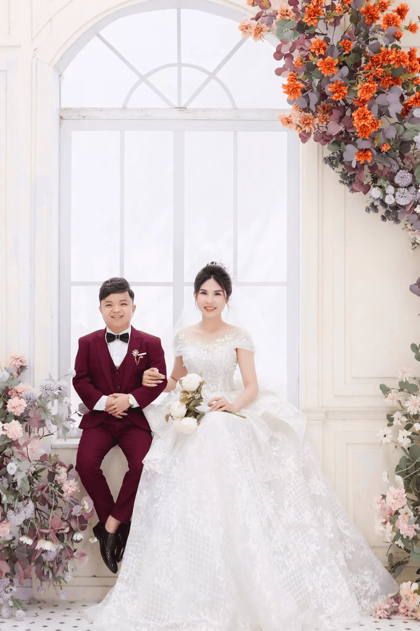 Because of their modest height, during the wedding, the groom had to stand on a podium to cut the wedding cake and pour wine along with the bride. The image of the couple walking side by side touched many people.