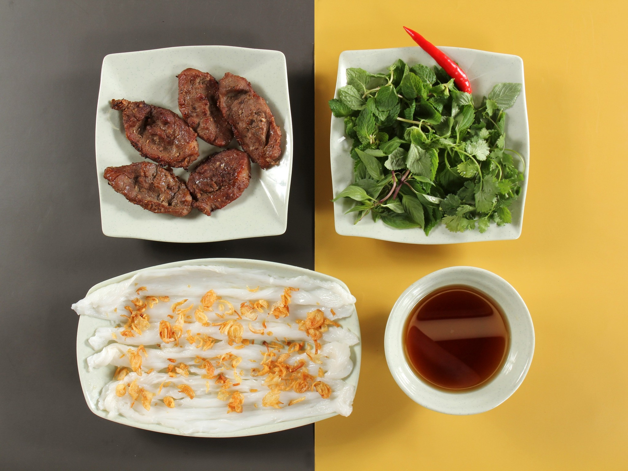 Depending on each variation of Vietnamese steamed rice roll, the ingredients are different. For Hanoi’s variation, ground pork and mushroom are must-haves. Meanwhile, for “banh cuon” in Cao Bang, the locals will add egg and bone broth. In Nghe An, the rolls do not include any fillings.