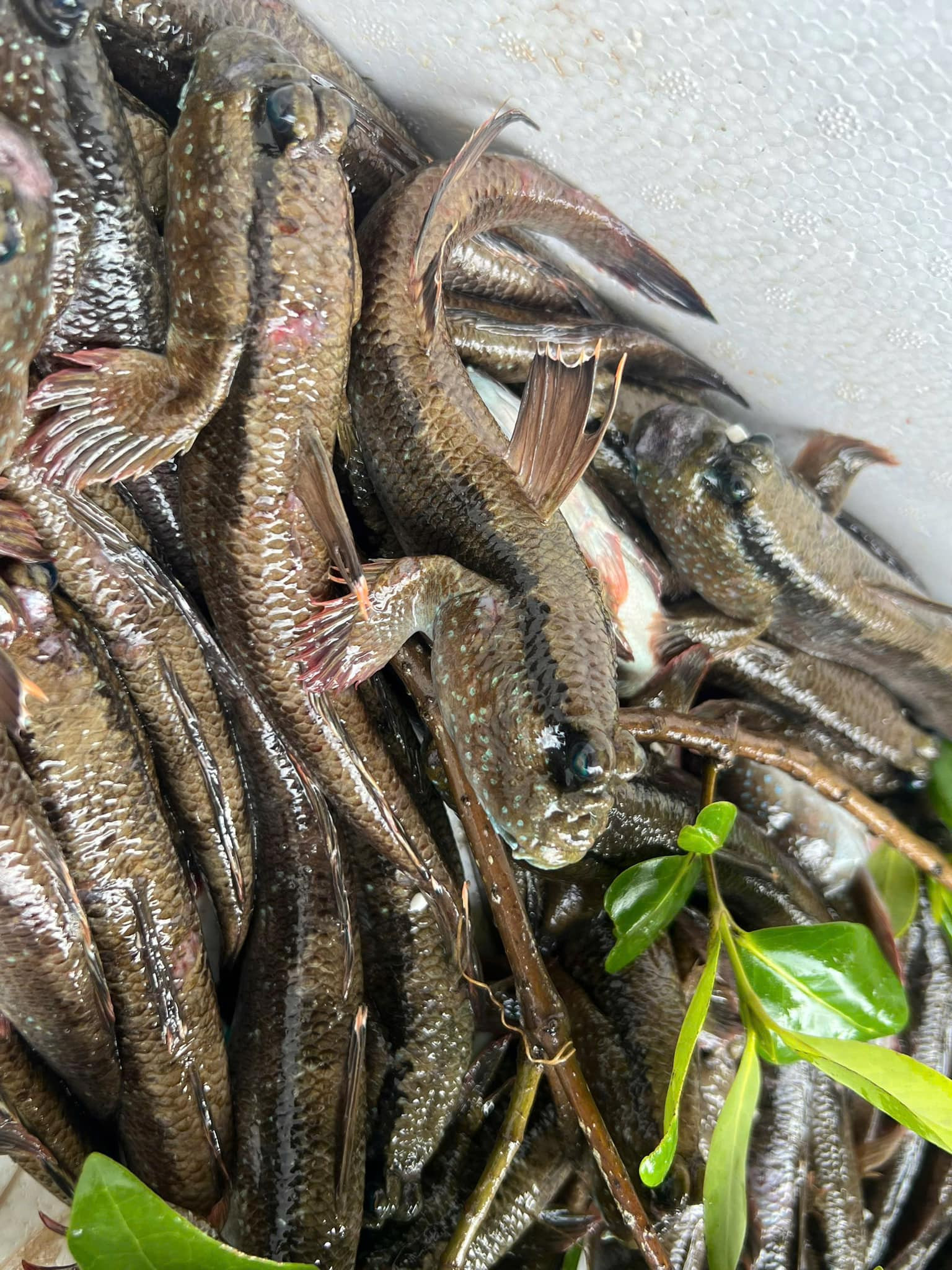 Local fishermen catch mudskippers using traditional trapping techniques. They set up traps made of nipa palm leaves or repurposed plastic bottles at the entrance of the fish’s burrow. As the tide recedes, the fish emerge and get caught in the traps. Fishermen then collect them quickly before they escape.