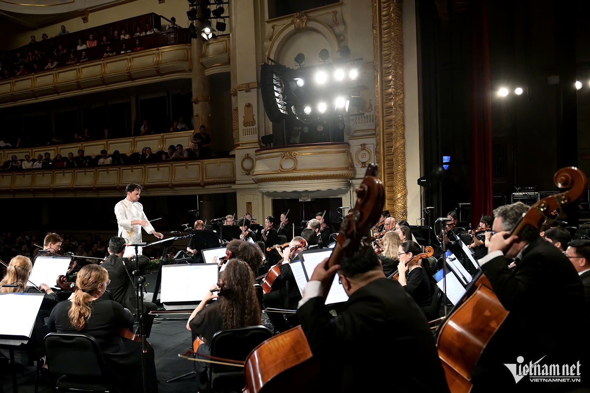 The French conductor made a particularly strong impression on the audience by opting not to wear a suit, but instead choosing a traditional Vietnamese ao dai, as a gesture of respect for the local culture and traditions. Just one day before the concert, conductor Olivier found an ao dai that he was pleased with.