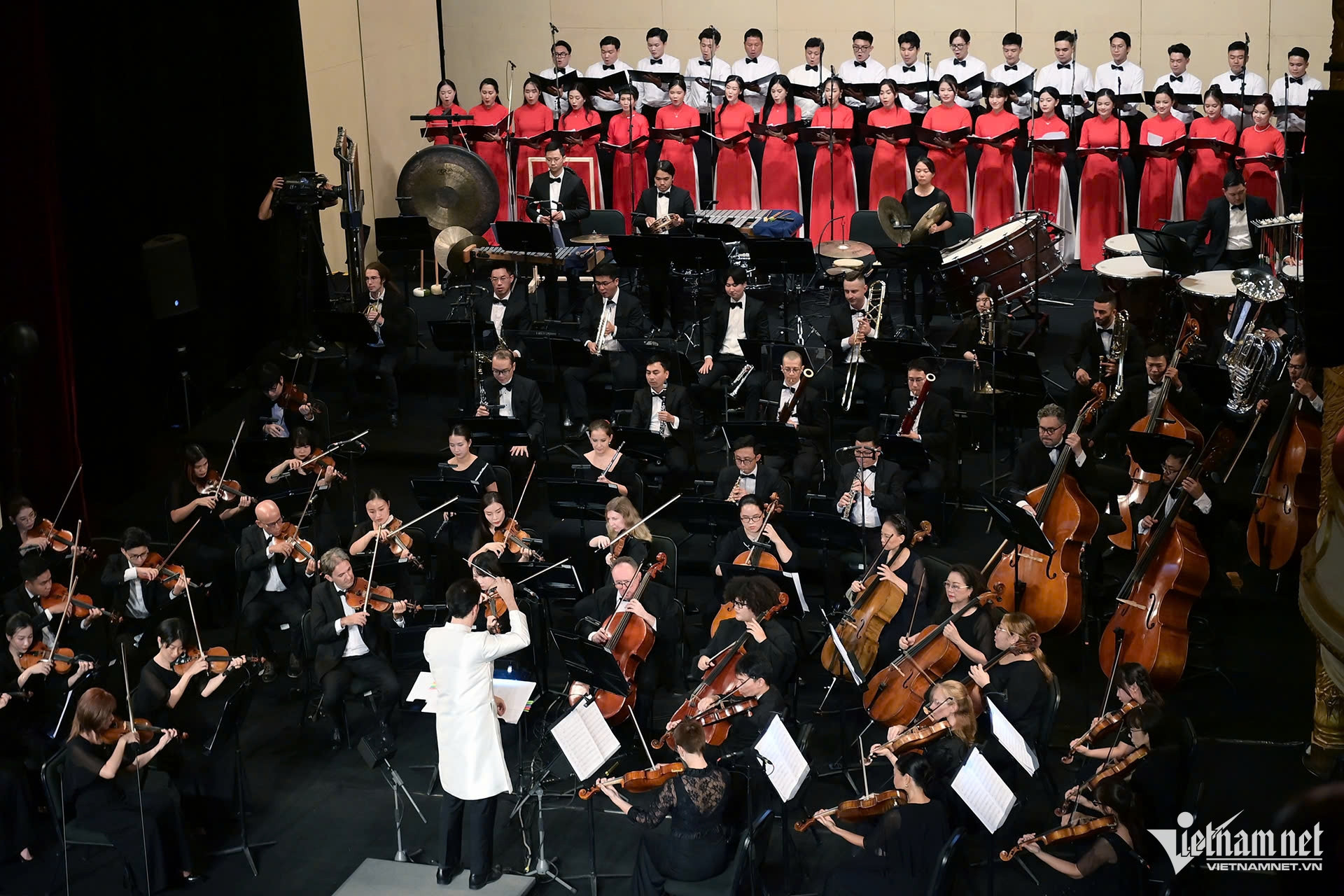 This special artistic program, along with millions of hearts, turns toward the homeland on this grand national day. It is a moment when every Vietnamese reflects on the heroic years and feels a renewed pride in the country and homeland through the following works: "Ho Keo Phao" (composed by Hoang Van, performed by singer Phuc Tiep and the Kosmos Opera Chorus), "Be Van Dan Lives Forever" (Music by Huy Du - based on the poetry of Trinh Duong, performed by singer Trong Tan), and the Symphonic Poem Dien Bien Phu (composed by Tran Manh Hung, performed by the Sun Symphony Orchestra).