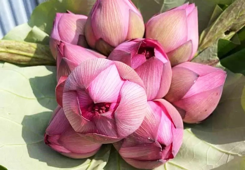 This year, at the beginning of the season, she bought thousand-petal lotus for 170,000 VND/bundle of 10 flowers, and now the price has cooled off to 130,000 VND/bundle. This price was equivalent to super lotus, but compared to Lotos Momo Botan, it was only 20,000-30,000 VND/bundle of 10 flowers more expensive.