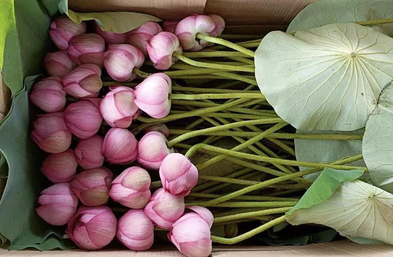 She imported from 4-5 lotus ponds, but each time she could only get about a dozen bunches. Currently, there is only one delivery a week, but she hopes that when the lotus season is in full bloom, more goods will arrive.