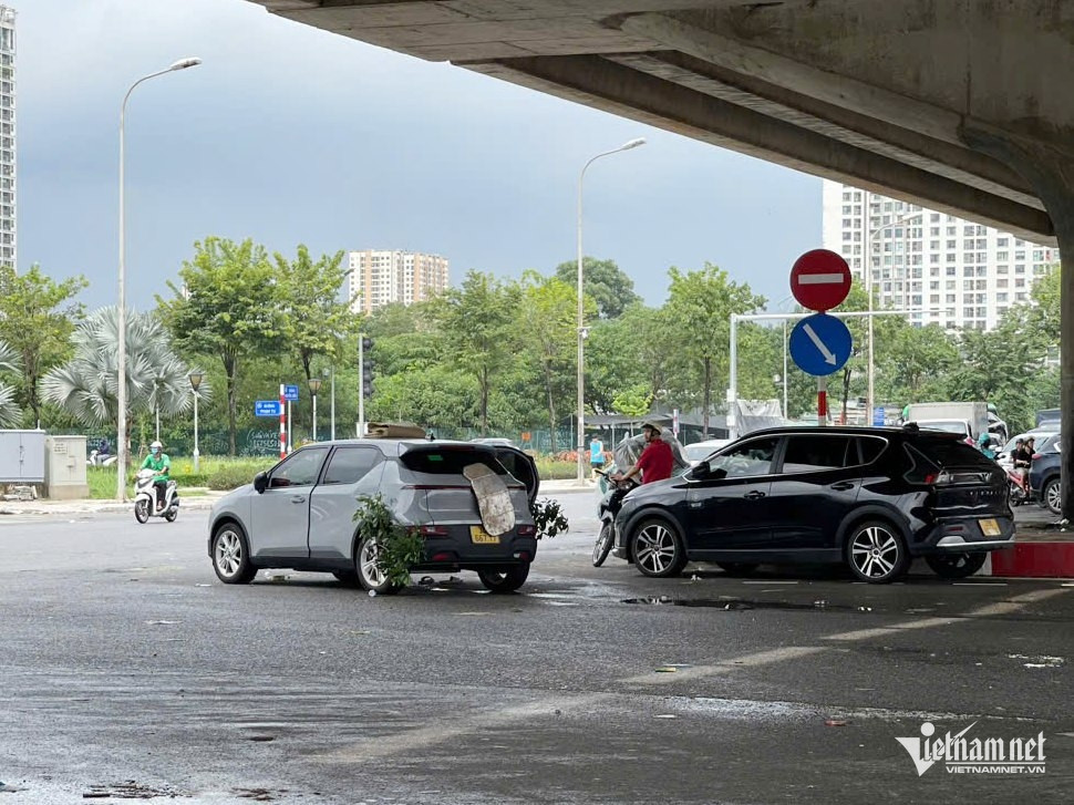 On the morning of October 1, VietNamNet reporters observed flood-damaged cars still scattered across inner-city areas such as Dong Da, Cau Giay, Thanh Xuan, Hoang Mai, and former Tu Liem. Many vehicles sat along roadsides, sidewalks, and in front of apartment complexes.