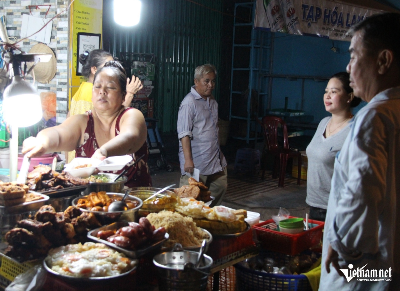 By day’s end, the modest sidewalk stall run by husband-and-wife duo Tran Tan Phong (54) and Nguyen Ngoc Thanh (53) on Co Giang Street (District 1) comes alive with hungry patrons. Set directly across from the Nhon Hoa temple, the stall serves familiar, comforting dishes-grilled pork ribs, sunny-side-up eggs, steamed egg meatloaf, salted egg meatballs, lemongrass fried chicken, tofu, caramelized pork and egg, Chinese sausage-all neatly arranged in polished stainless steel trays.