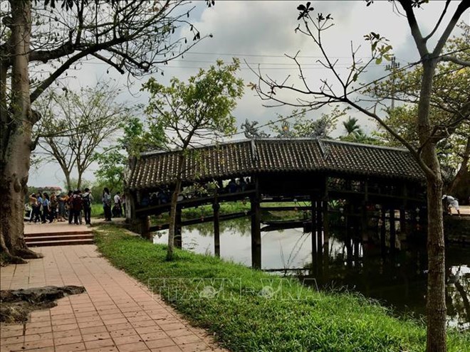 The Thanh Toanarch bridge has both sides protected by railings with balconies, crossing anirrigation canal extending from the entrance to the end of Thanh Toan village,Thuy Thanh commune, about 8km from the centre of Hue city. It has become a populartourist destination.