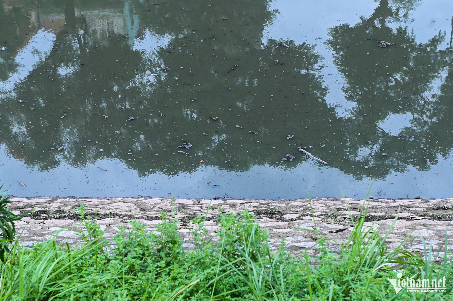 From the source to Thanh Xuan district, the water surface is dirty, with many sections of scum floating.