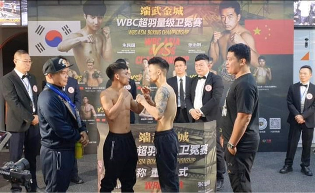 The main event will be a WBC Asia continental super feather weight title match between Ju Min Guk of South Korea and Zhang Zhi Gang of China.