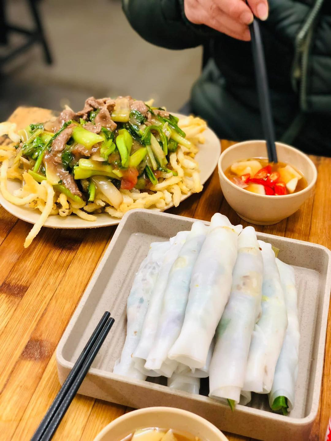 Here, the rice noodle wrappers are soft yet firm, with a fragrant rice aroma. The filling features savory stir-fried beef and crisp vegetables, offering a balance of richness and freshness.