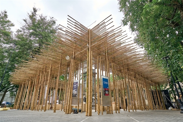 | This work in Diên Hồng Flower Garden is made from bamboo showing a newly formed structure embracing old values, creating and transforming familiar spaces with sustainable traditional materials. — Photo courtesy of Kienviet Media |