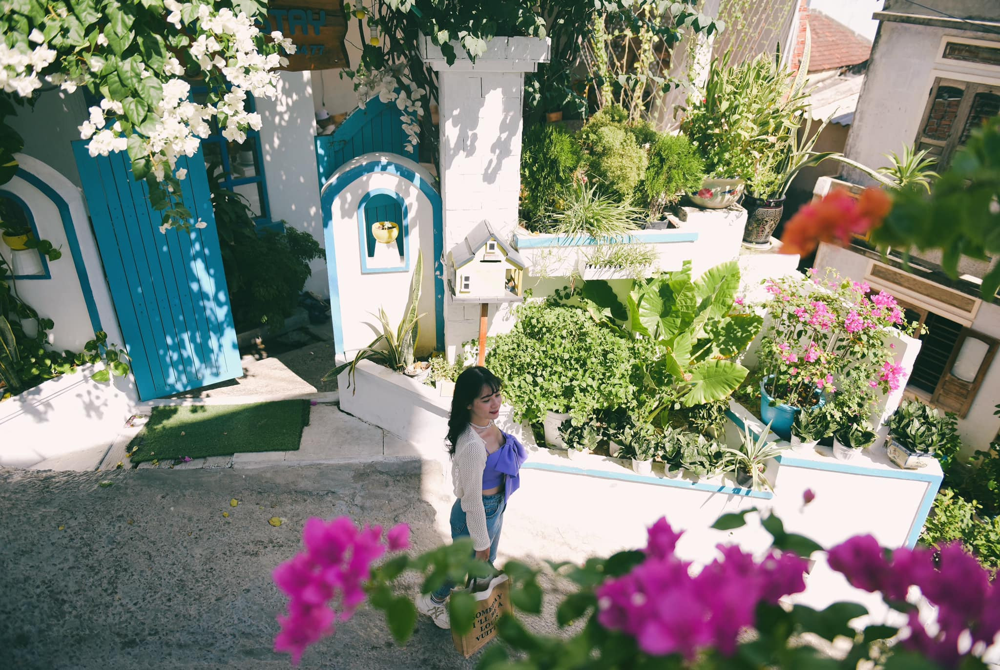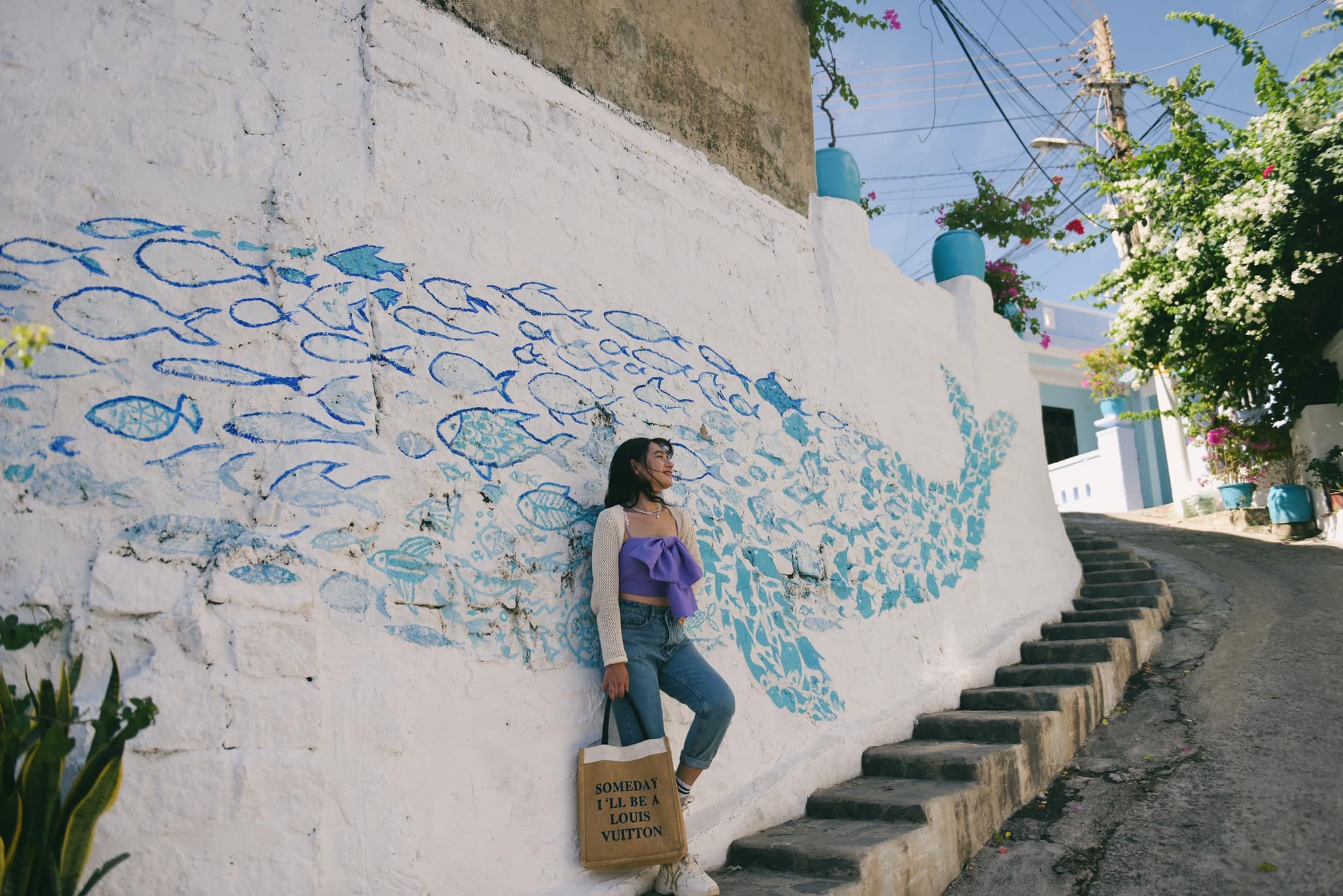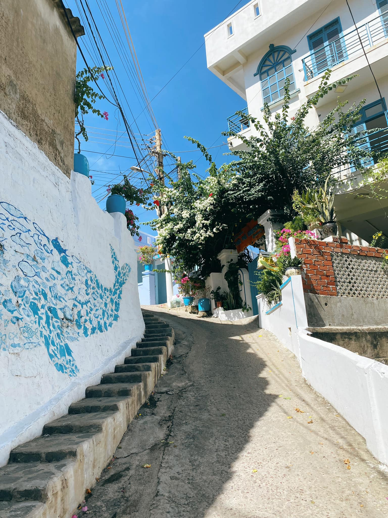 Nhon Ly fishing village with winding slopes to the sea and a blue-white mural road reminds many people of the village in the popular Korean TV series "Hometown cha cha cha", or the famous island of Santorini in Greece.