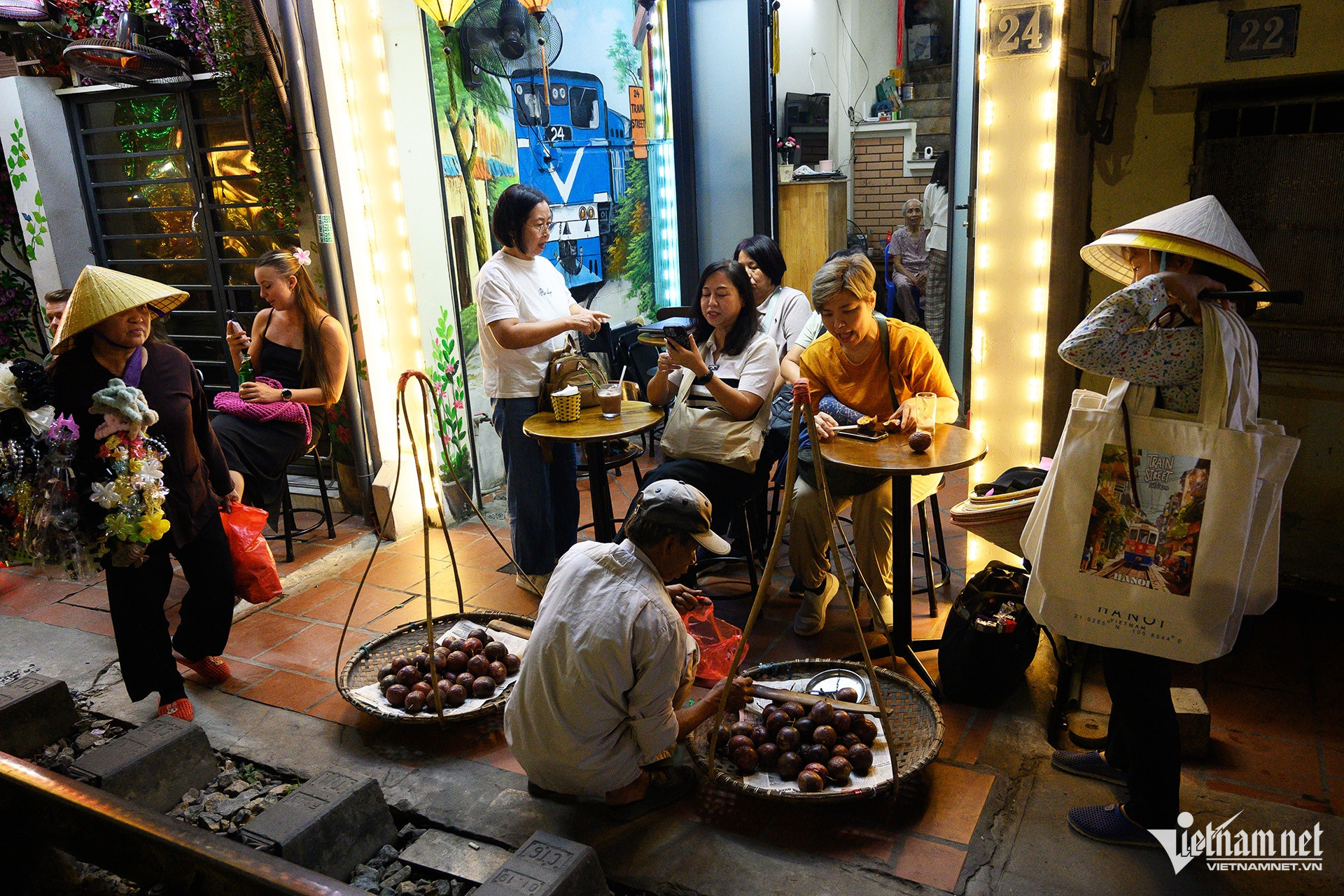 During late autumn, the narrow street lined with cafes along the railway tracks saw a surge in visitors, primarily foreign tourists.
