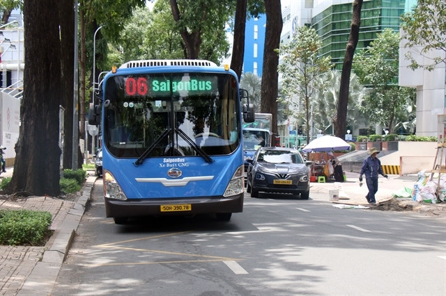 | A CNG bus running on road in HCM City. Việt Nam has set target that all vehicles on road will use electricity and green energy by 2050, opening significant opportunities for the development of EVs in the country. — VNA/VNS Photo Tiến Lực |