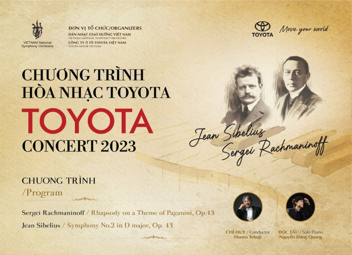 During the Toyota Concert 2023, pianist Nguyen Dang Quang and the VNSO will treat audiences to classic pieces by composers Sergei Rachmaninoff and Jean Sibelius.