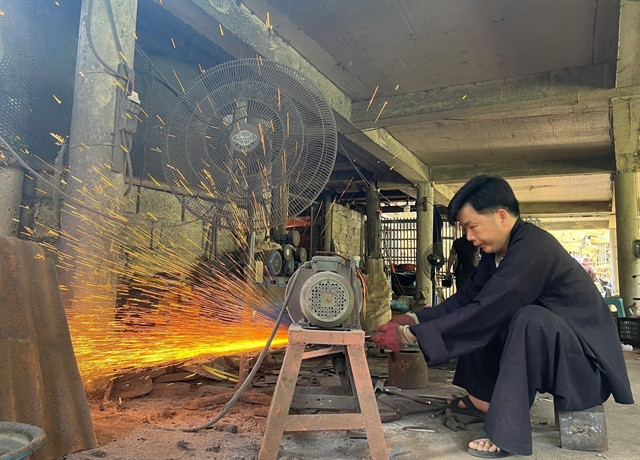 | The manual process of thinning and shaping the iron is extremely labour-intensive. — VNA/VNS Photo |