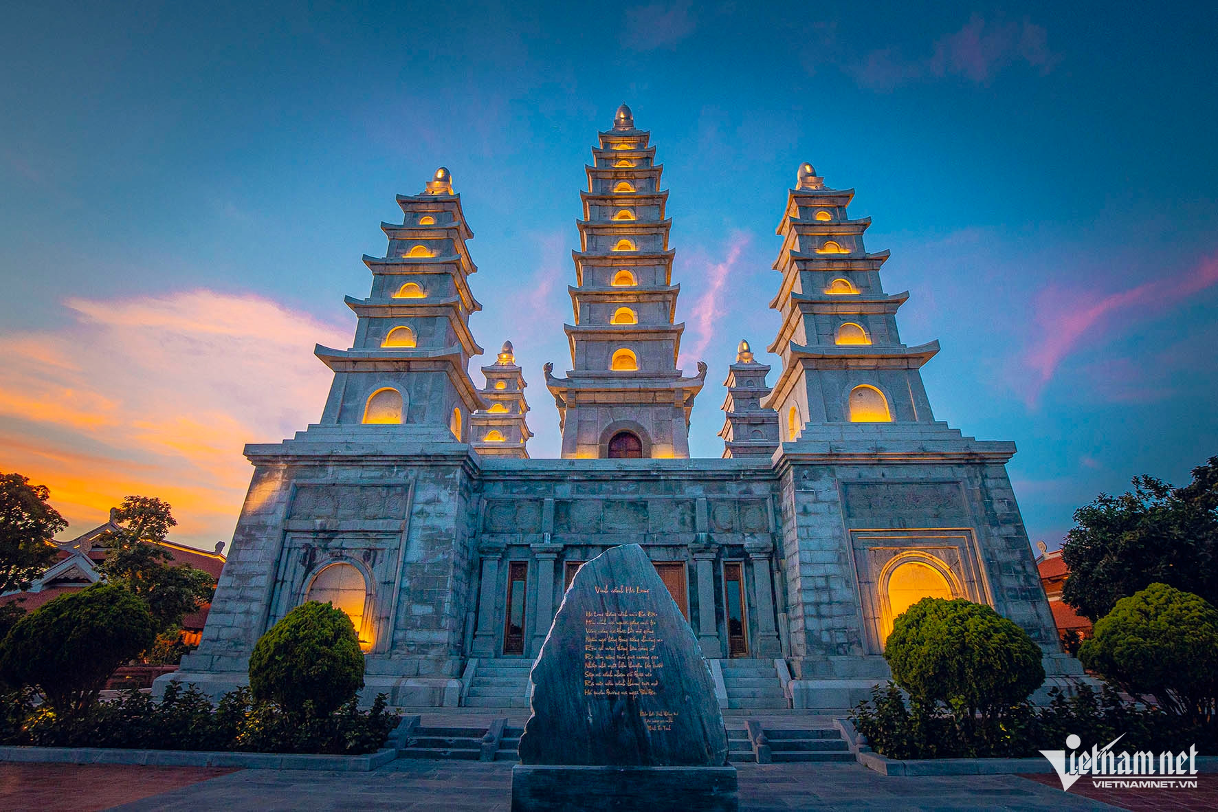 Spanning an area of 4,000 square meters, the complex includes the main gate, the Ngu Phuong stupa, a bell tower, a drum tower, the main hall, the ancestral house, and the Mother Goddess shrine, flanked by the left and right corridors (ta vu and huu vu).