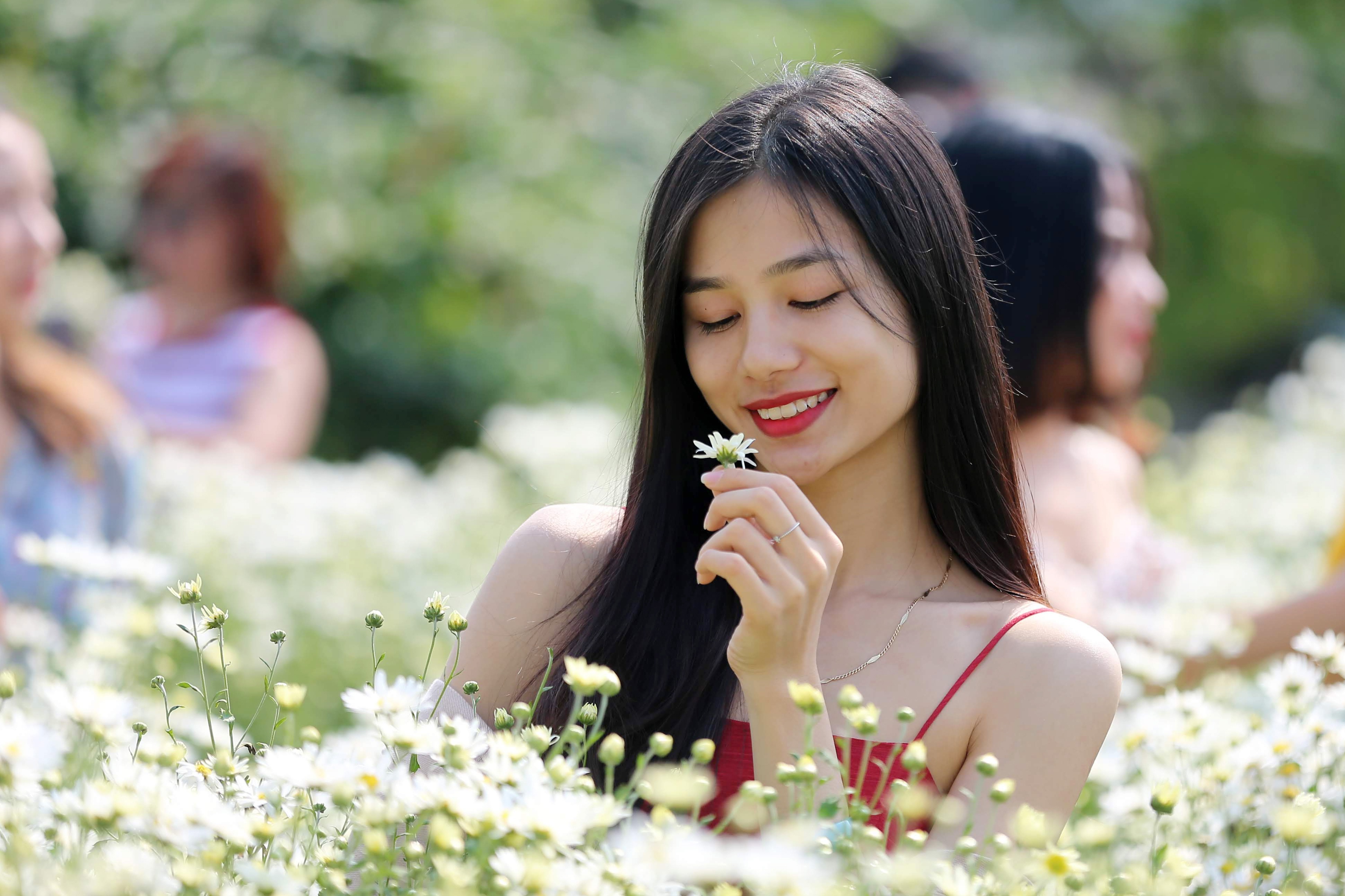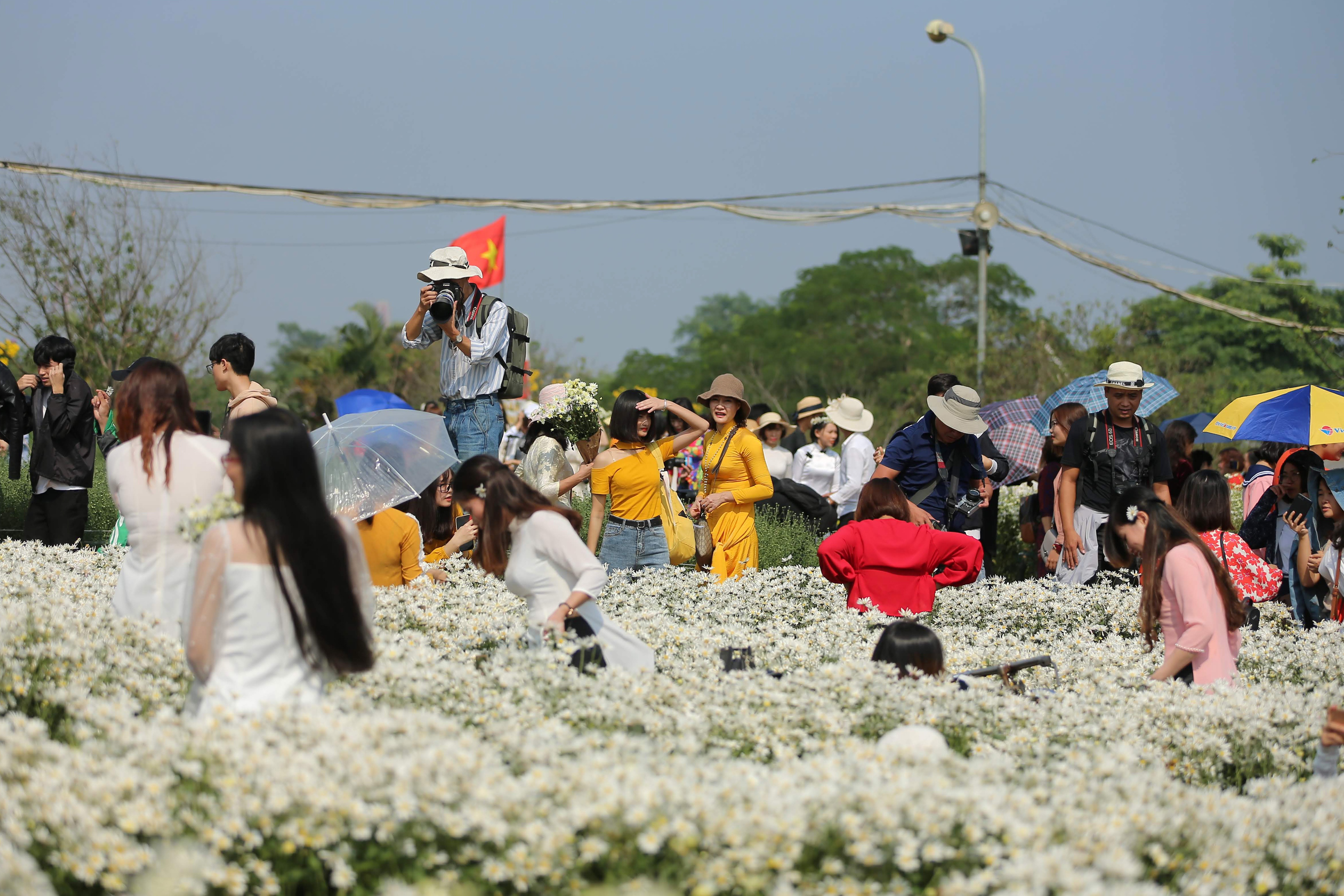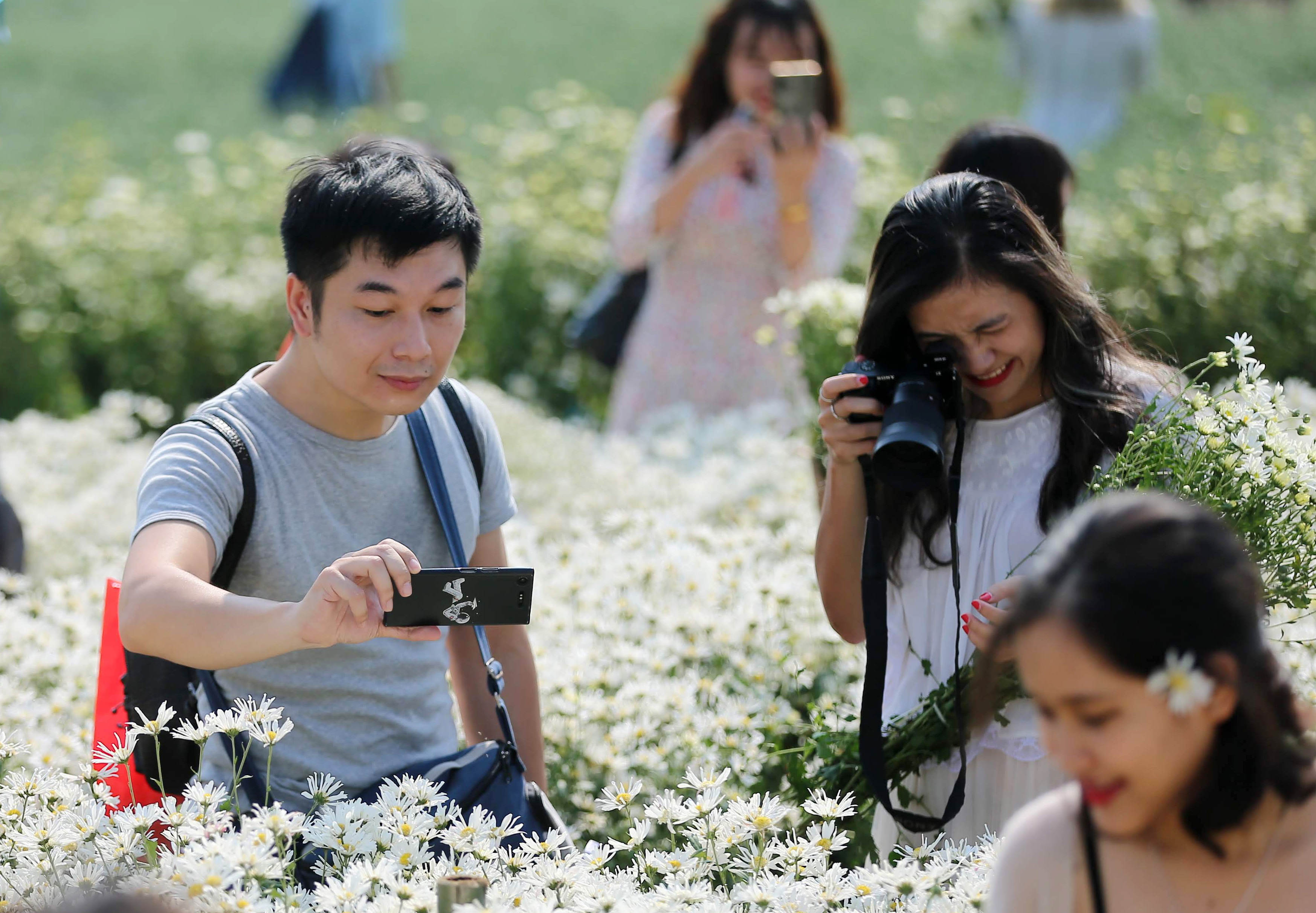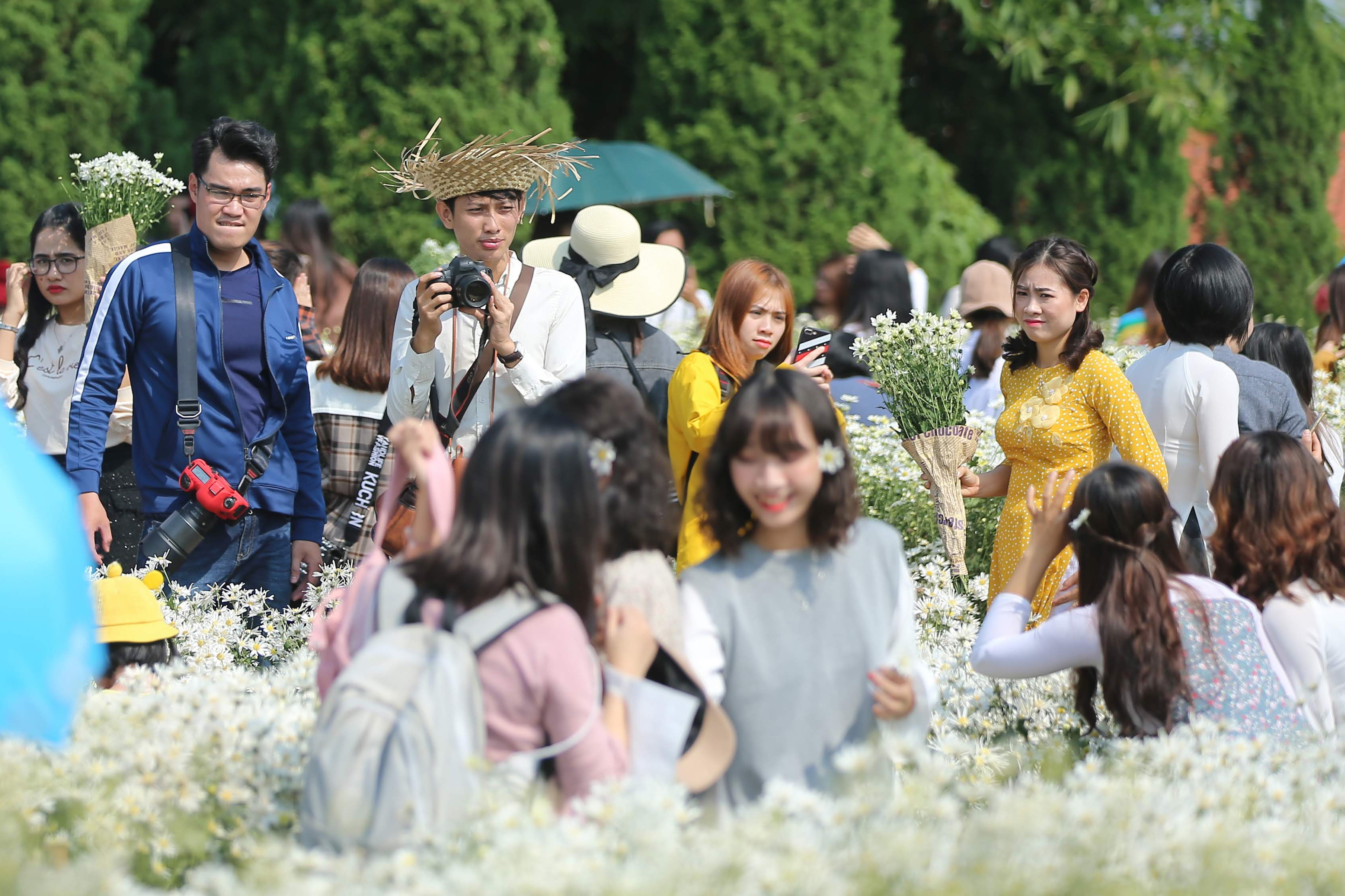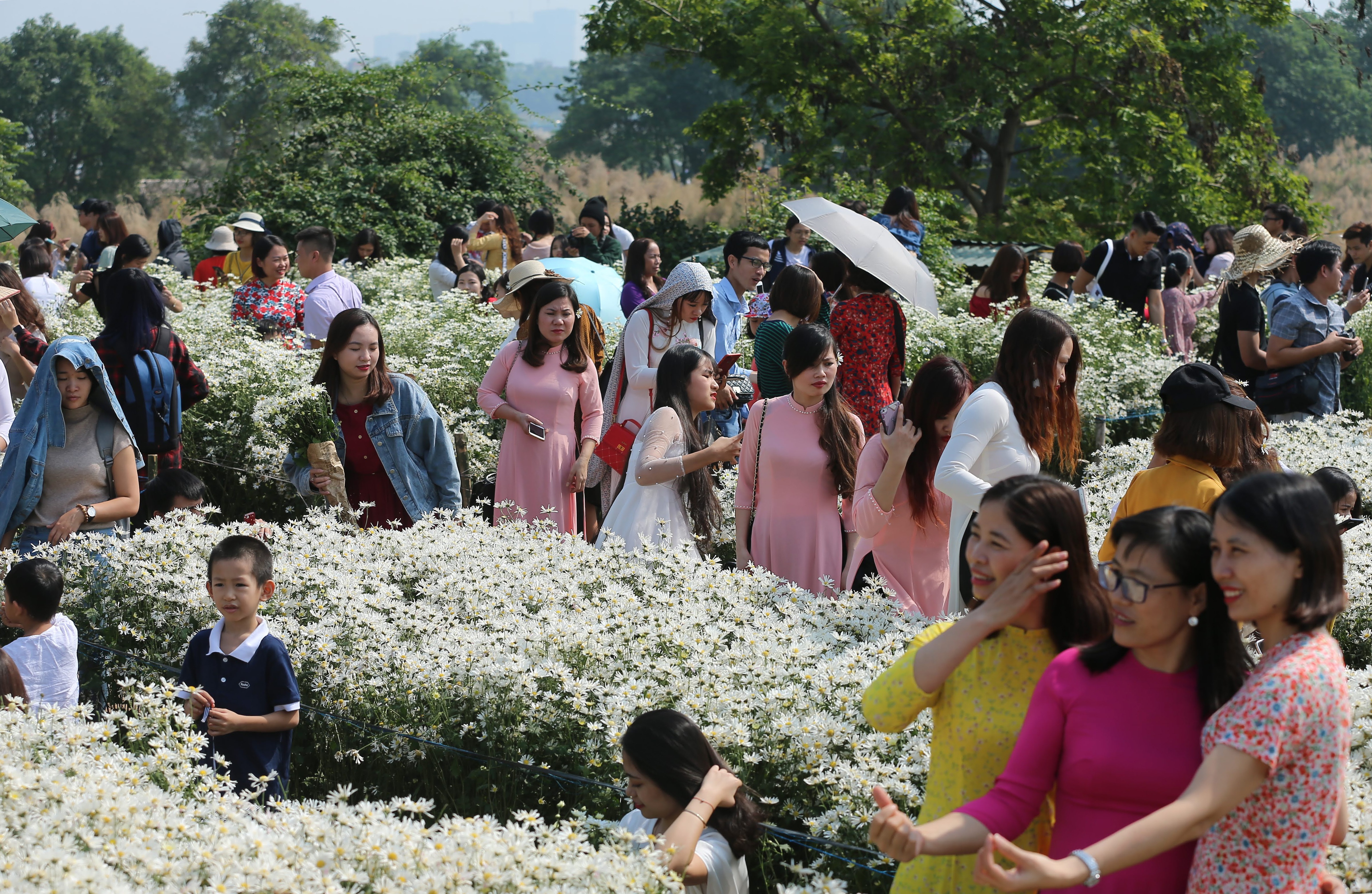 The gardens in Nhat Tan Ward were packed during the weekends, from early morning until sunset. Many people love to take photos of the daisies or to check-in at the well-known flower village. As a result, it is not easy to take a photo without a large number of people in the background.