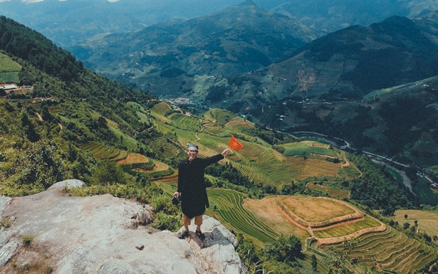 | Nguyễn Tuấn Khanh is on the unique Dinosaur Backbone Mountain in Mù Cang Chải, Yên Bái Province. |
