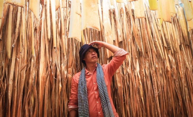 | Nhân is pictured with the medium for his artworks - melaleuca bark. Photo courtesy of Lê Hoàng Nhân |