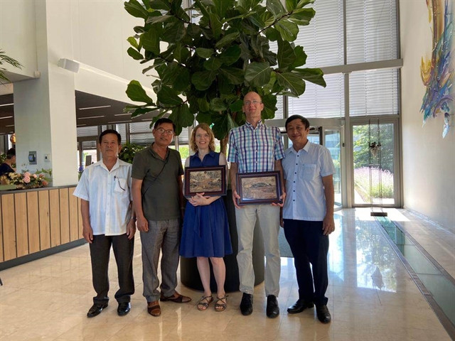 | Nhân's melaleuca bark pictures have become favourite souvenirs of many international friends to Kiên Giang Province. — Photo courtesy of Lê Hoàng Nhân |