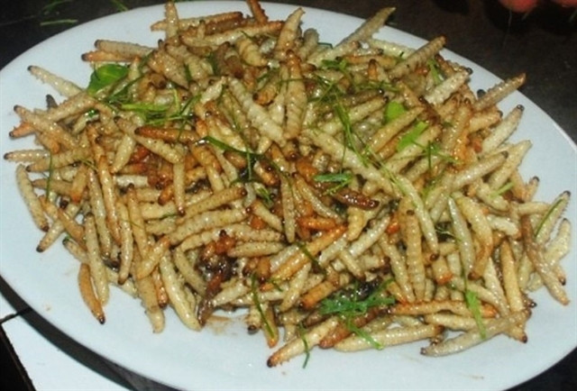 The grubs can be cooked in various ways, such as stir-fried or roasted. The dish is popular in everyday meals or as a snack for men while drinking wine.