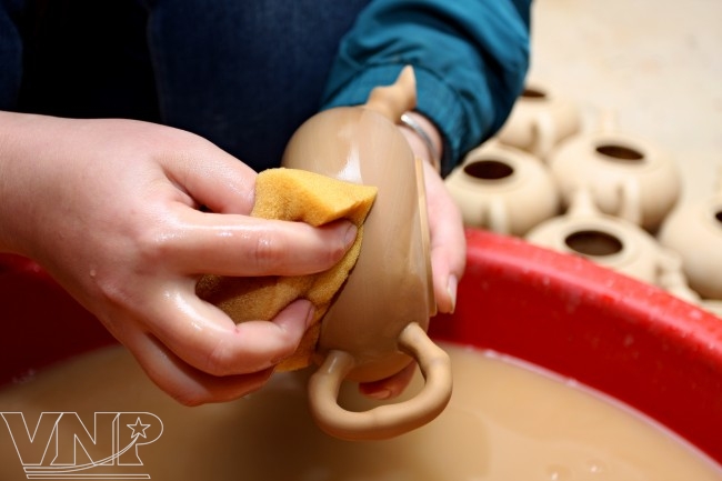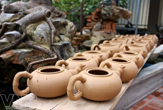 According to Tuan, the clay to make a Tu Sa teapot is purple and can be found in Vietnam. However, the artisans must have wide knowledge about the soil and know how to blend the materials. The temperature in the kiln must reach 1,2000c. Therefore, the teapots give off clear sounds when being beaten by a hard object.