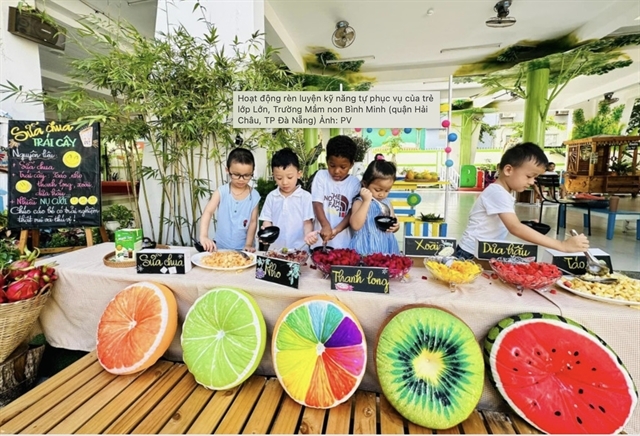 | A class of self-service skills training activities for children in Bình Minh Kindergarten in Đà Nẵng City. Photo giaoducthoidai.vn |