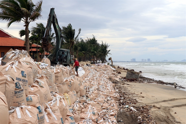 Cua Dai beach in the popular tourist destination Hoi An City was reinforced ahead of the storm.