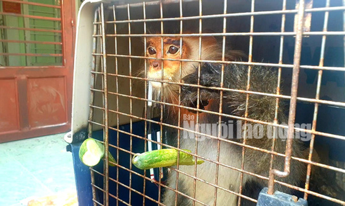 Initial assessment shows that it may be a grey-shanked douc langur which is listed on the IUCN Red List as critically endangered. The police are investigating the case while trying to transfer the langur to the rescue centre.