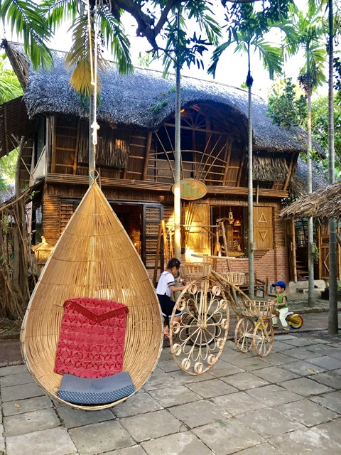 | A house is made of bamboo and nipa palm in Cẩm Thanh Commune. Craftsmen in the commune also weave bamboo and nipa palm into decorative items. Photo courtesy of Taboo Bamboo |