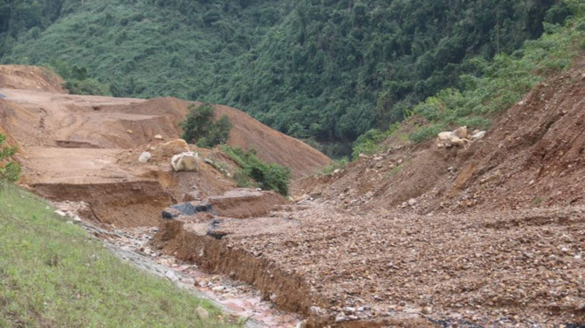 In Quang Ngai province roads leading towards mountainous districts are damaged by landslides.