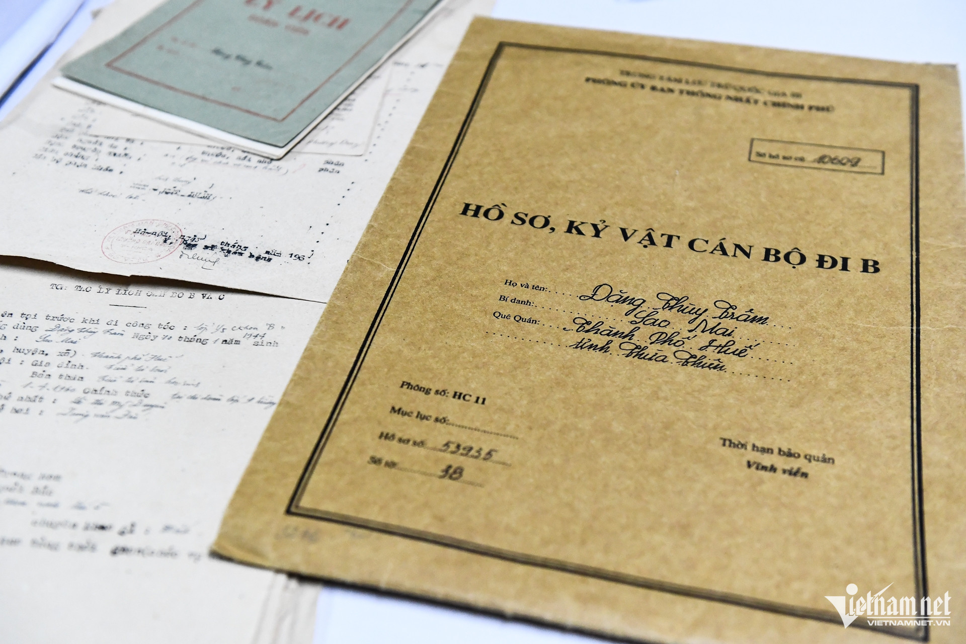 Personal files and memorabilia of individuals who served in the "B" battlefield during the war against the U.S., notably the records of martyr Dang Thuy Tram.