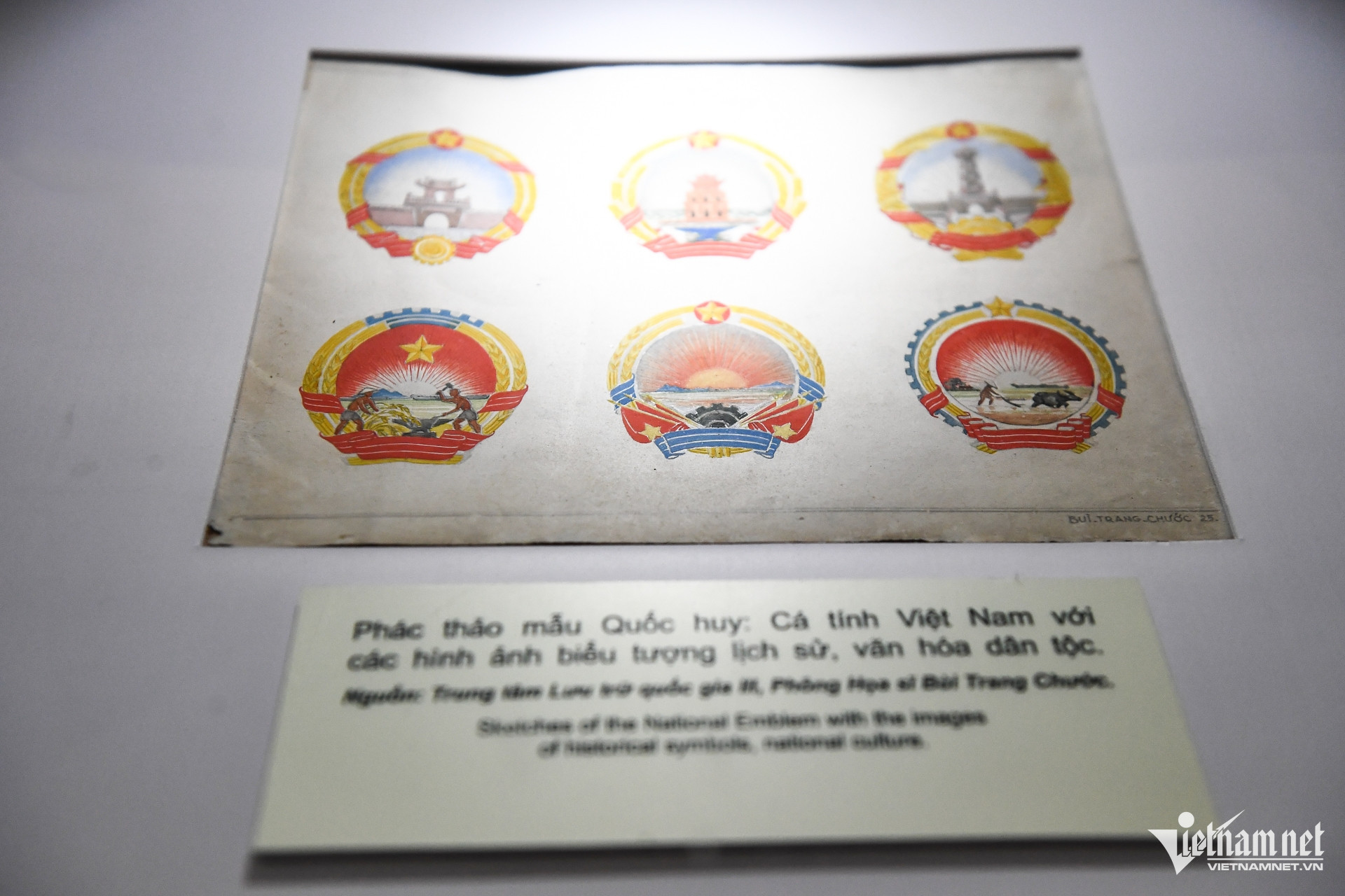 A collection of drafts for the Vietnamese national emblem by artist Bui Trang Chuoc (1953–1955).