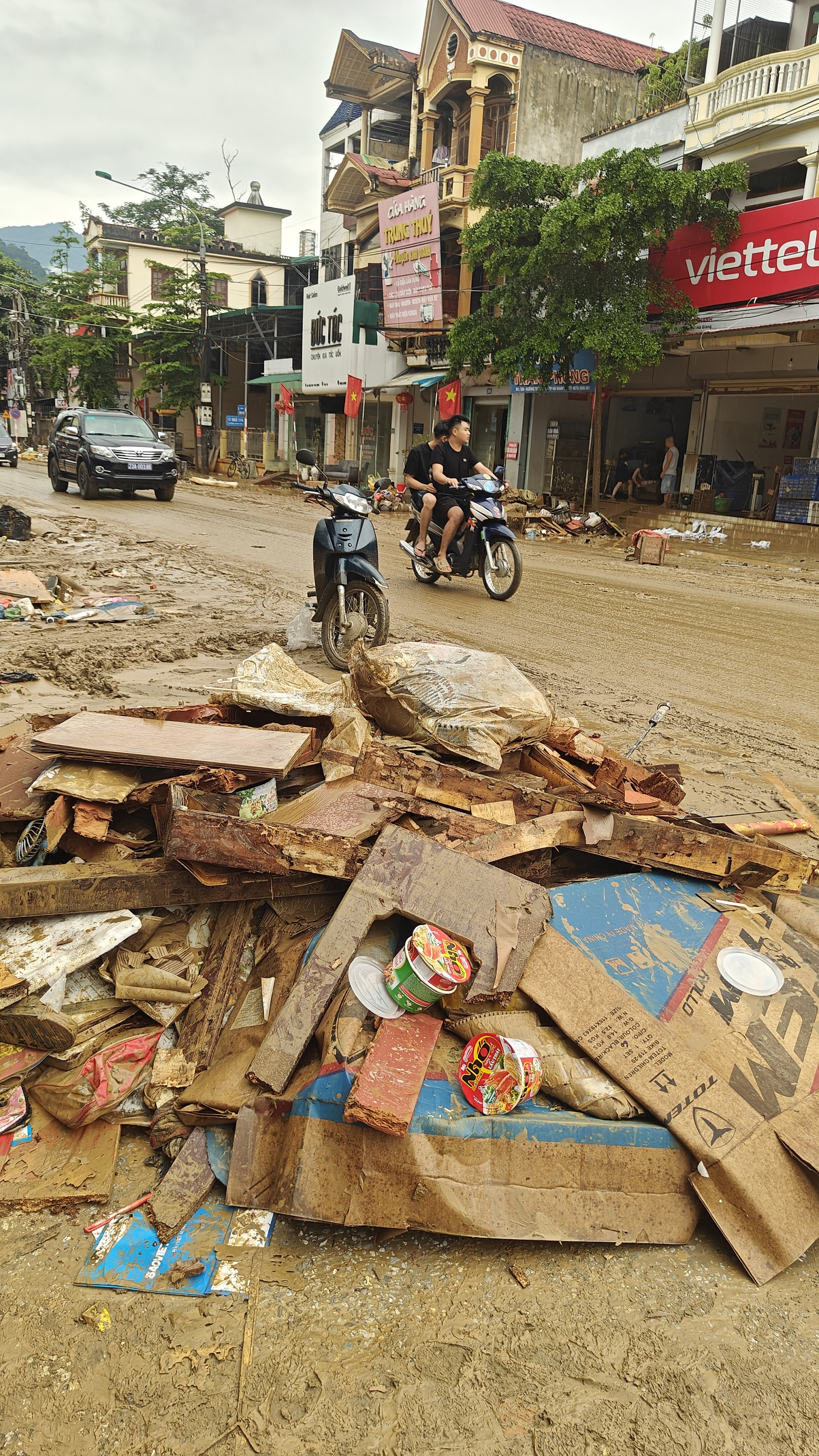 Caroline, a tourist from Denmark, says she will never forget the devastation she witnessed in Tuyen Quang after a massive flood: streets blanketed in thick, dark mud, homes and shops severely damaged.