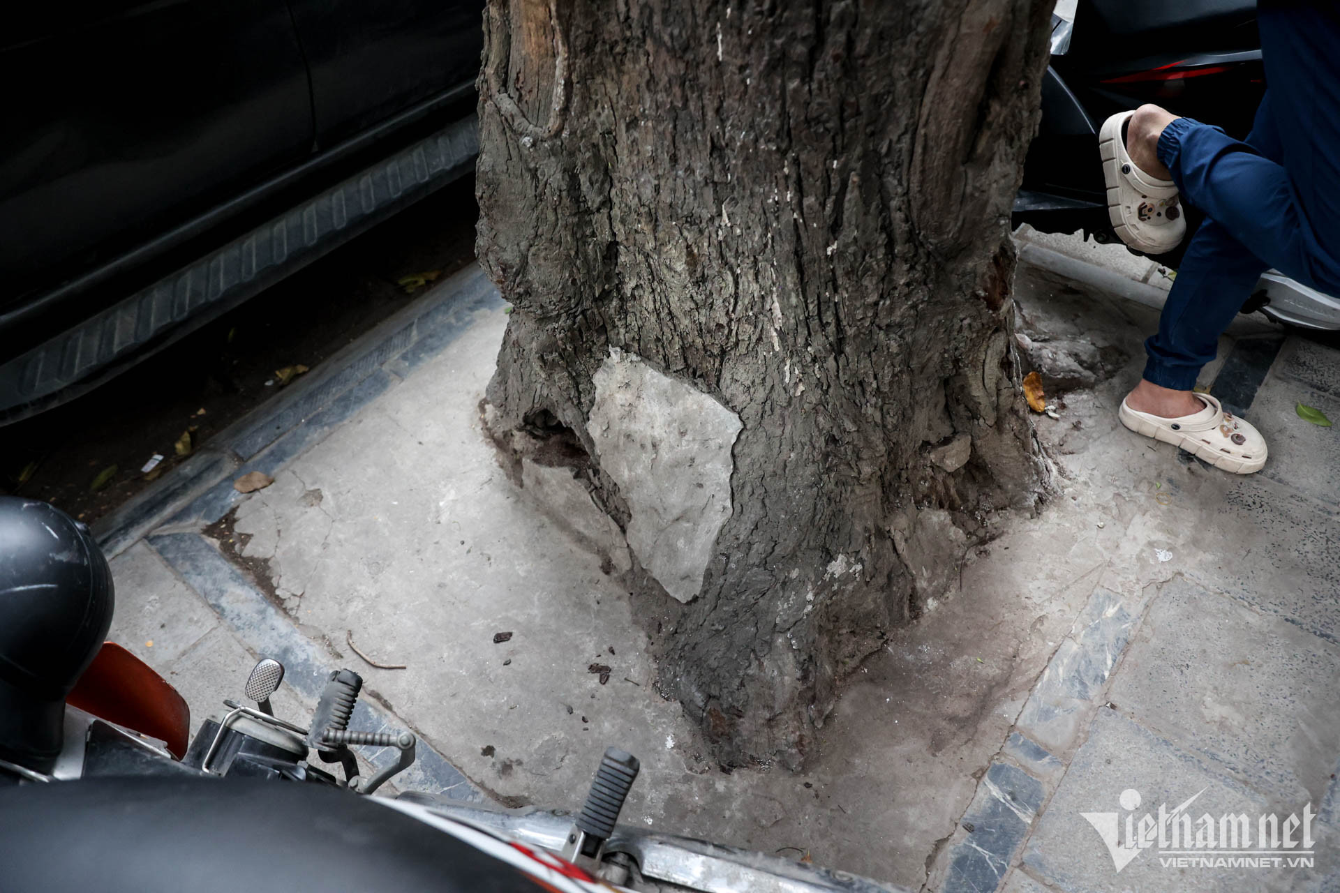 Other instances of dead or wilting trees have been observed along the street. Just meters away, another black star tree in front of 71 Lo Duc has been encased in cement at its base, having died four years ago. Additionally, the tree outside 34 Lo Duc is wilting, unlike its thriving counterparts on the same street.