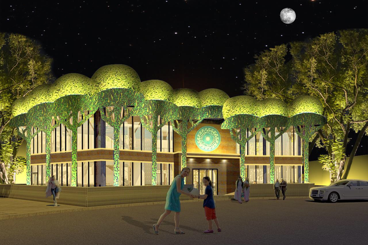 The 12 columns surrounding the house serve as strong trunks supporting the upper 12 arches.