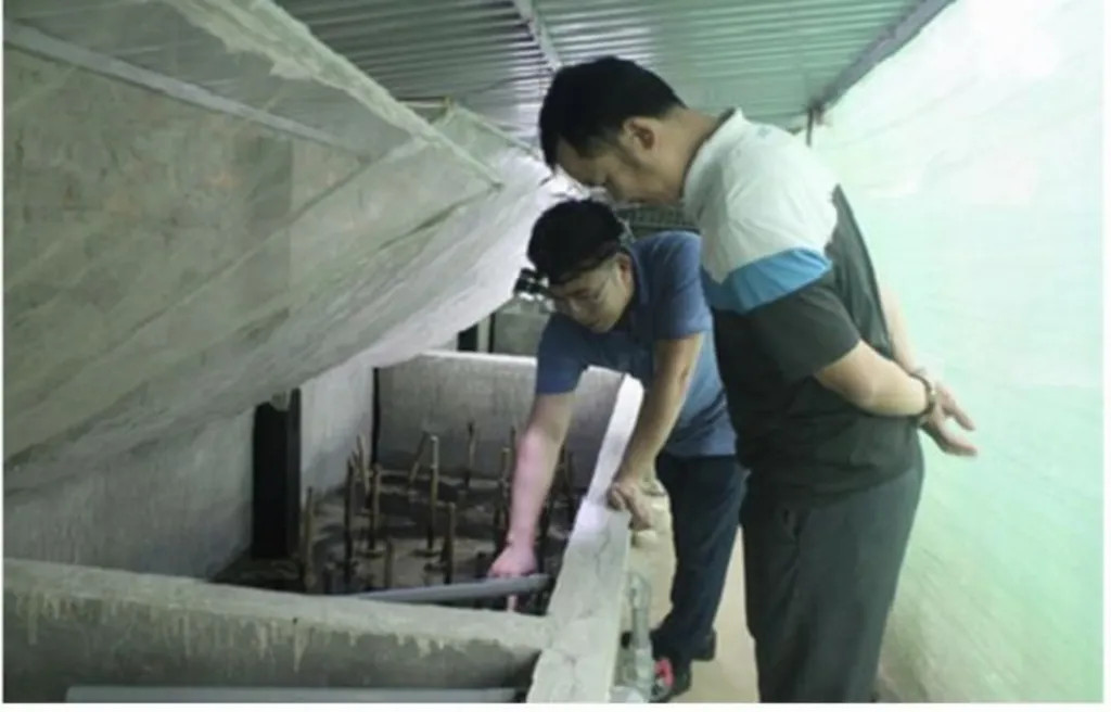 | Phan Văn Hiệp (left) is checking raising tank of cà cuống. Photo danviet.vn |