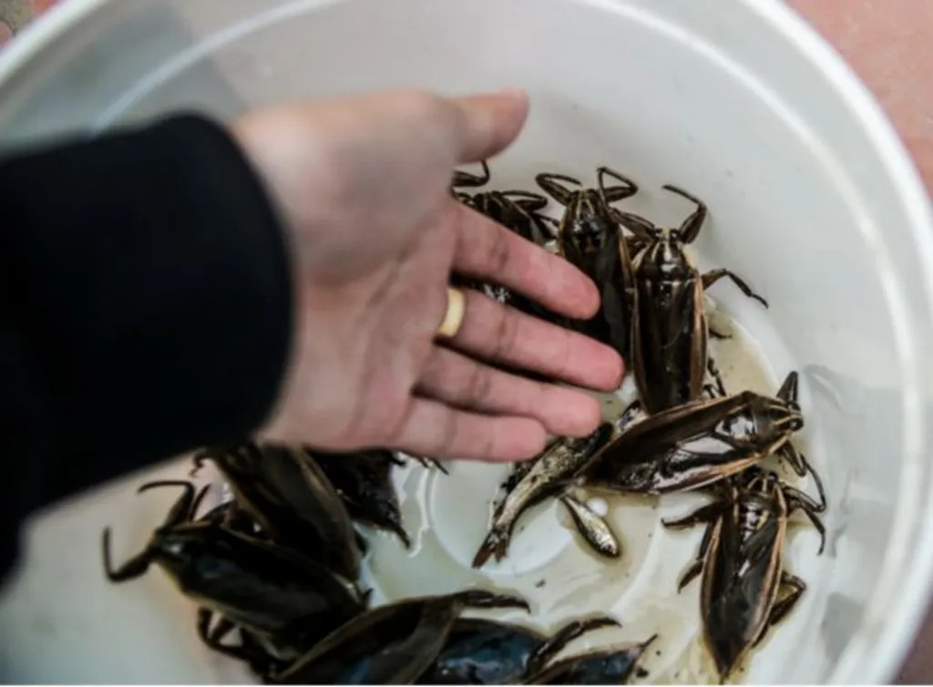 They decided to raise the bugs to produce their homeland's special delicious natural cà cuống fish sauce.