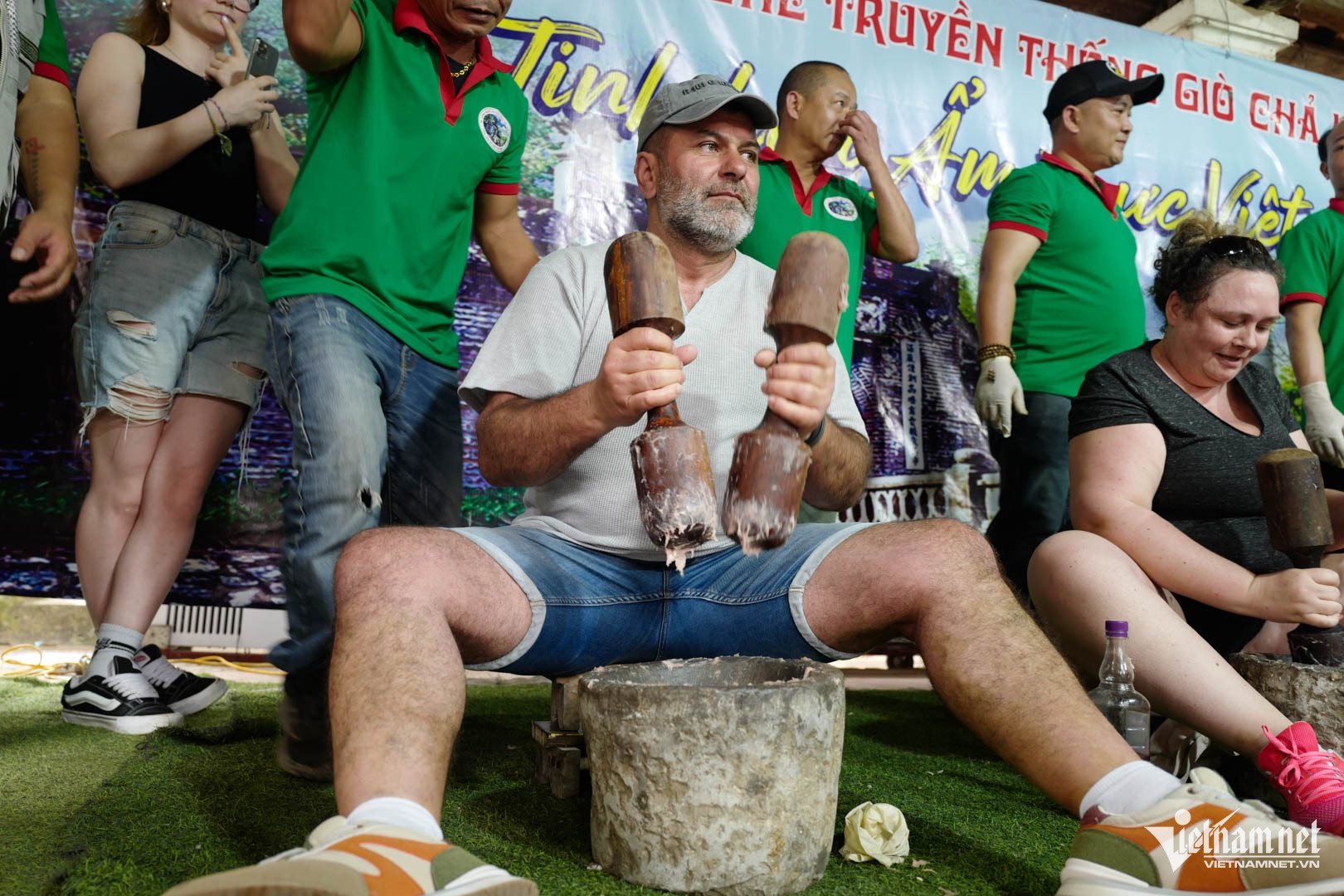 Marleine, a French tourist, and her six-member family visited Uoc Le Village during the festival. Locals invited them to experience hand-pounding pork rolls and sample the village’s signature delicacies.
