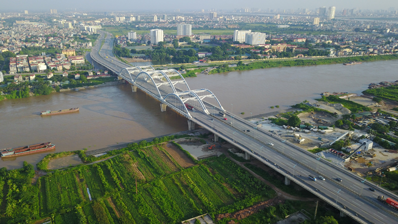 Dong Tru Bridge helps connect Dong Anh and Long Bien districts.