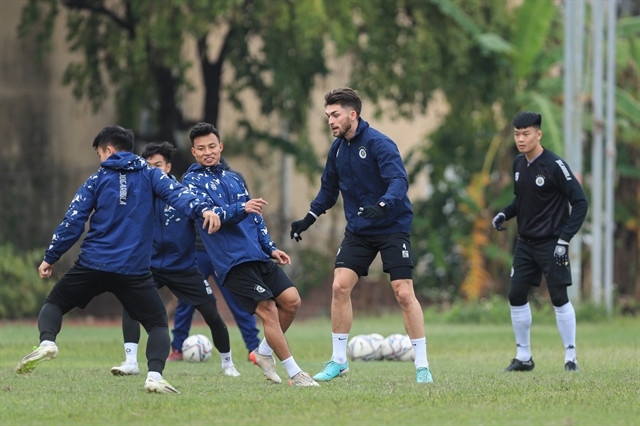 | Hà Nội FC team train for the upcoming matches in the V.League 1. — Photo courtesy of Hà Nội FC |