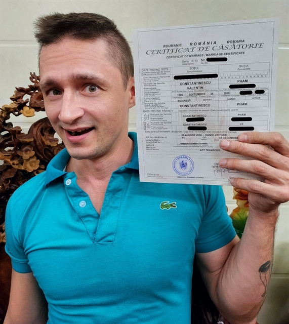 | Valentin supported his wife to keep her Vietnamese surname after marriage. — Photo courtesy of Valentin Constantinescu |