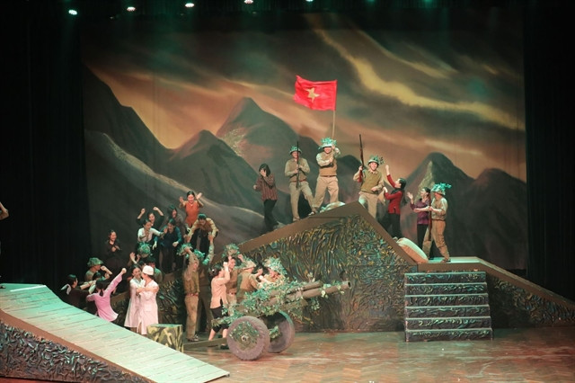 Written by Associate Professor Tất Thắng and directed by People's Artist Lê Hùng, the play vividly depicts the fighting spirit and determination of Vietnamese military troops and people during the resistance against the French. It celebrates the shining examples of soldiers, serving workers, youth volunteers and various classes of people who contributed to the historic Điện Biên Phủ victory.