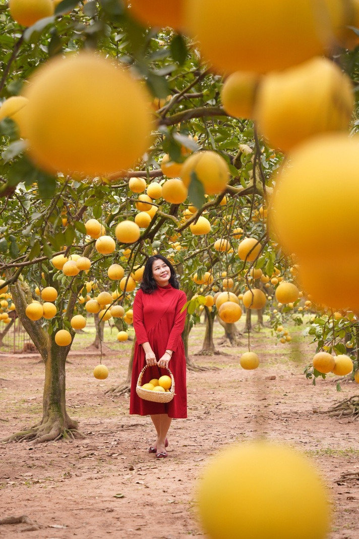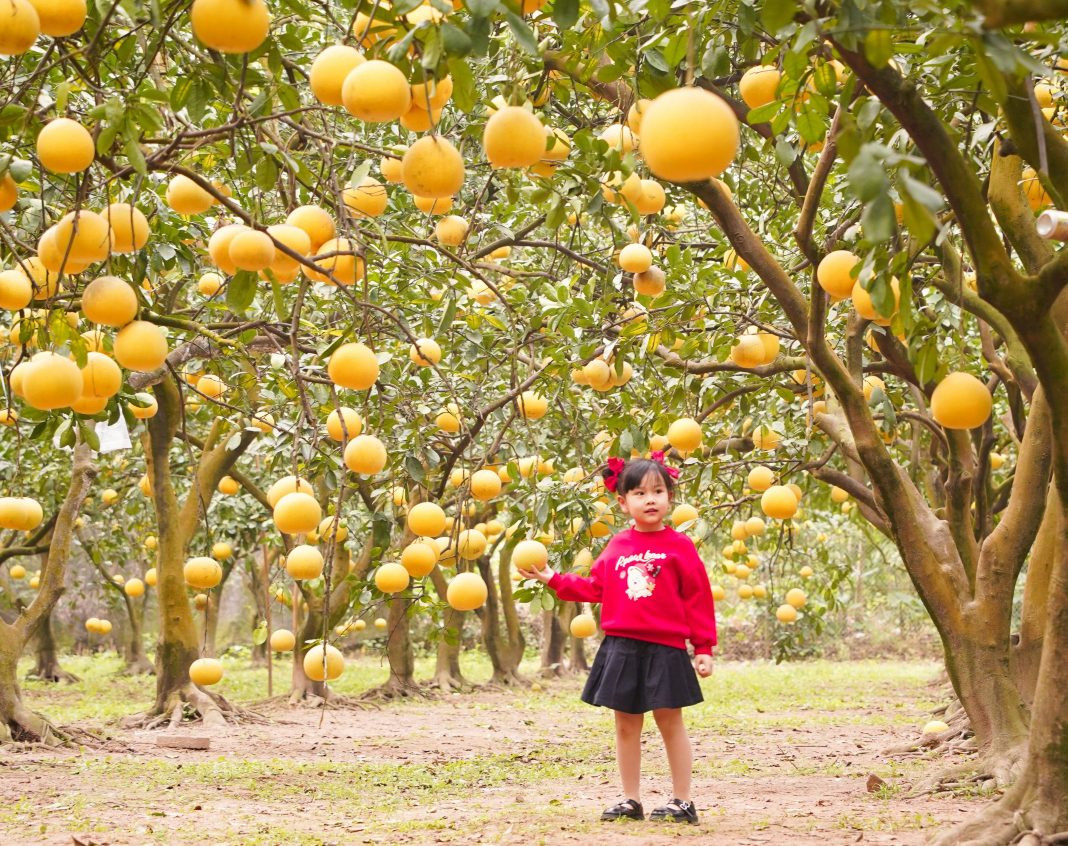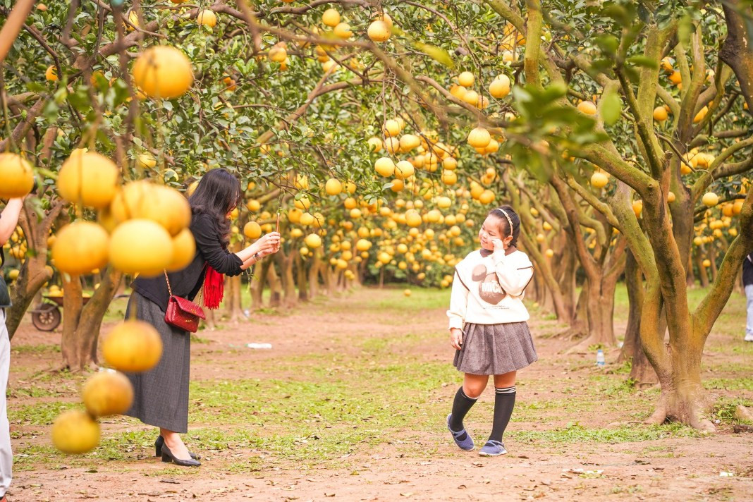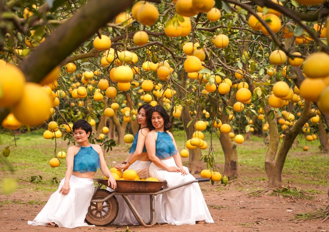Amidst the bustling capital, the ripe pomelo orchards stand out as a captivating sightFamilies visit the pomelo orchards on weekendsA mother and child create beautiful memories while exploring a pomelo orchardA lady admires the golden-skinned pomelo orchardDressed as a farmer, another lady relishes the act of picking pomelosAs Tet approaches, thousands of ripe pomelos simultaneously transition to a vibrant yellow hueThree elegantly dressed ladies pose for photos in such memorable moments amidst the pomelo orchardsA graceful lady, dressed in áo dài (the traditional Vietnamese long dress), surrounded by pomelosThe golden-skinned pomelo orchards offer visitors a plethora of beautiful momentsMany ladies linger in the Dien pomelo orchards for hours, savoring the beauty that envelops themMany ladies linger in the Dien pomelo orchards for hours, savoring the beauty that envelops themThe innocent charm of a young girl amidst the pomelo orchardDien pomelos: substantial, splendid, and sweet