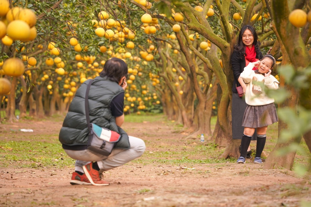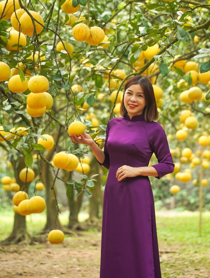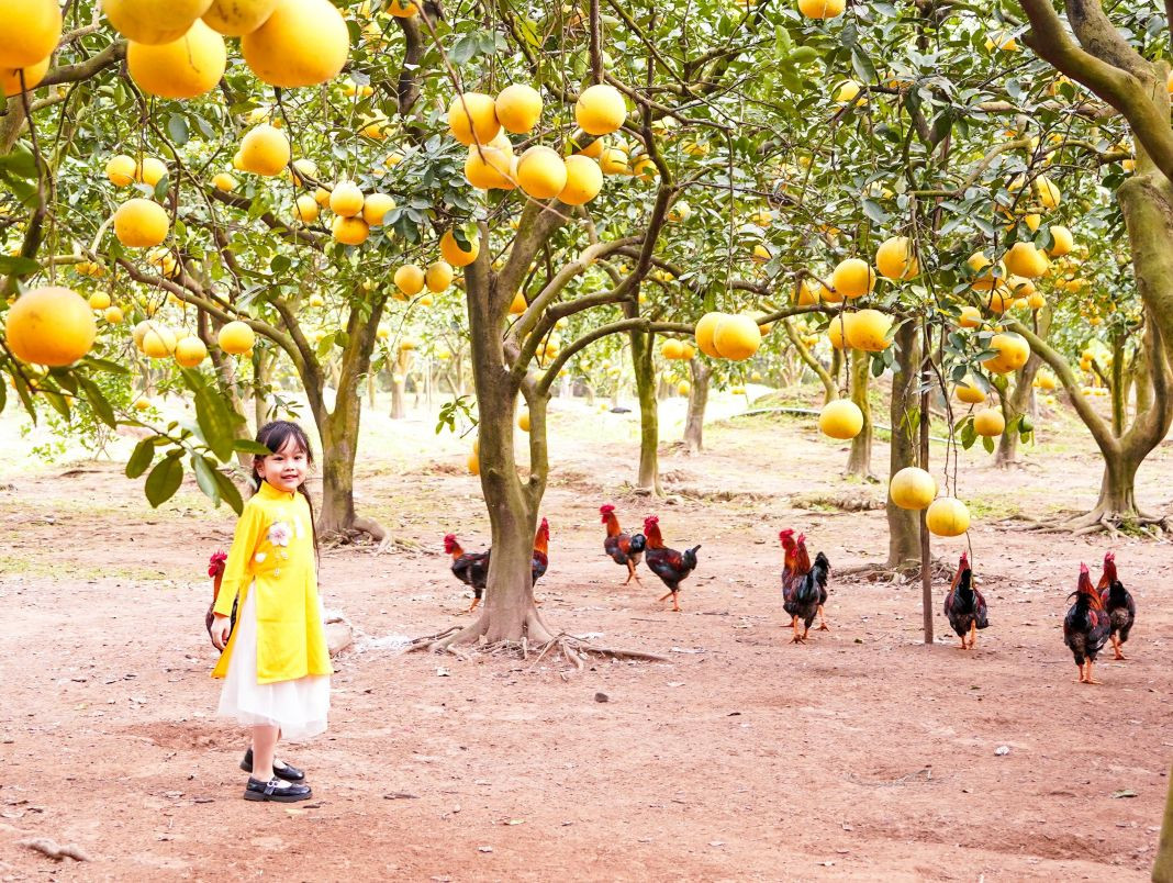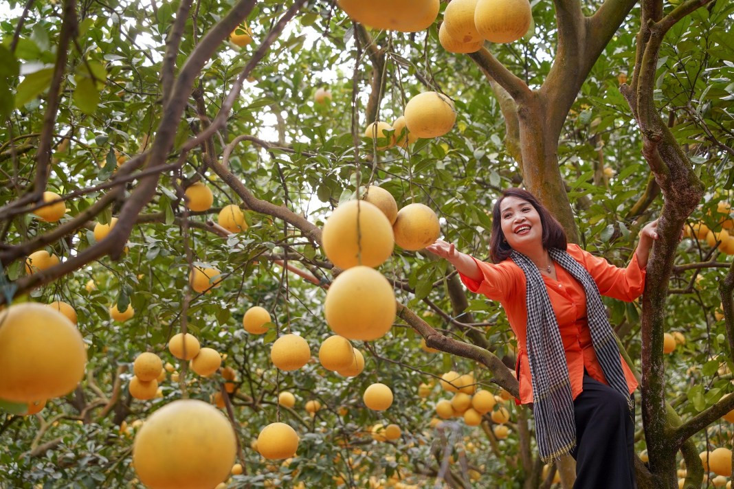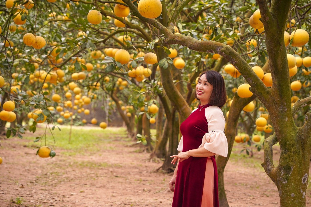 Amidst the bustling capital, the ripe pomelo orchards stand out as a captivating sightFamilies visit the pomelo orchards on weekendsA mother and child create beautiful memories while exploring a pomelo orchardA lady admires the golden-skinned pomelo orchardDressed as a farmer, another lady relishes the act of picking pomelosAs Tet approaches, thousands of ripe pomelos simultaneously transition to a vibrant yellow hueThree elegantly dressed ladies pose for photos in such memorable moments amidst the pomelo orchardsA graceful lady, dressed in áo dài (the traditional Vietnamese long dress), surrounded by pomelosThe golden-skinned pomelo orchards offer visitors a plethora of beautiful momentsMany ladies linger in the Dien pomelo orchards for hours, savoring the beauty that envelops themMany ladies linger in the Dien pomelo orchards for hours, savoring the beauty that envelops themThe innocent charm of a young girl amidst the pomelo orchardDien pomelos: substantial, splendid, and sweet