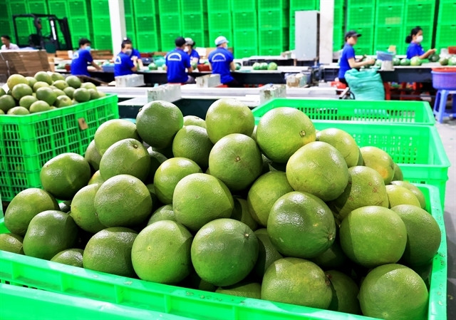 | Green-skinned pomelos processed for export. The global demands for importing rice, fruits and vegetables are increasing on disruptions to supply chains in many countries due to geopolitical conflicts and trade wars, providing significant opportunities for Việt Nam. — VNA/VNS Photo Hồng Đạt |