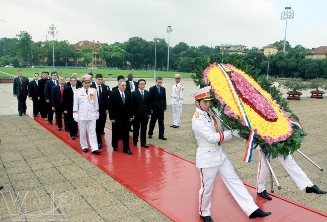 ![]() State President Truong Tan Sang meets with President Raul Castro Ruz. ![]() Prime Minister Nguyen Tan Dung talks with President Raul Castro Ruz. ![]() National Assembly Chairman Nguyen Sinh Hung meets with Raul Castro Ruz. ![]() President Raul Castro Ruz lays a wreath and visits the President Ho Chi Minh Mausoleum. |