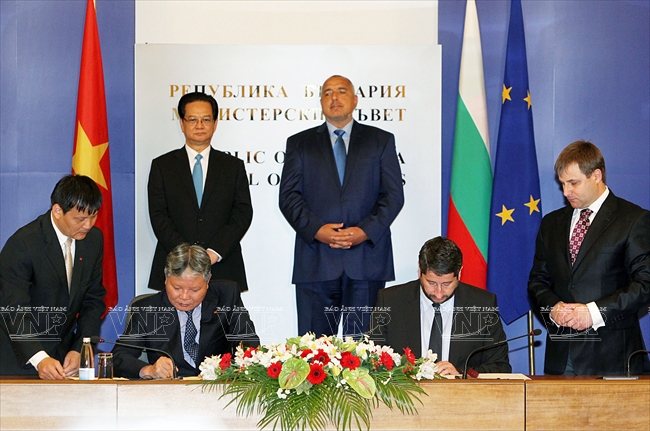 ![]() Prime Minister Nguyen Tan Dung and Bulgarian Prime Minister Boyko Borissov witness the signing of agreements on cooperation.